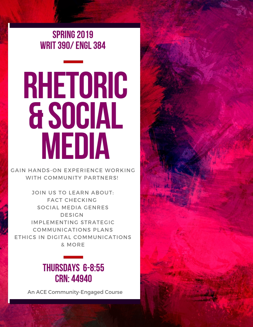 Rhetoric & Social Media Published on October 26, 2018 in Spring 2019 Teaching FlyersFull resolution (816 × 1056) Next →